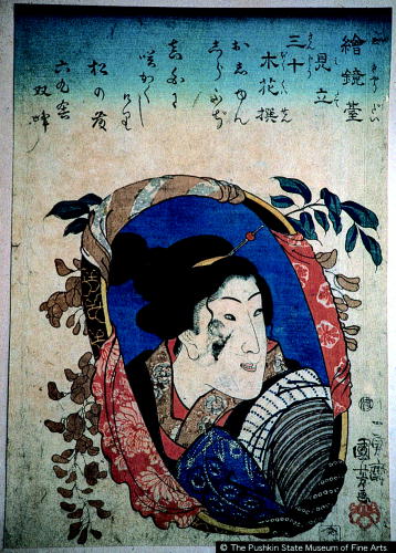 絵鏡台見立三十木花撰 おしゆん しらふぢ/ Ekyoodai mitate sanjuubokkasen Oshun and Shirafuji |