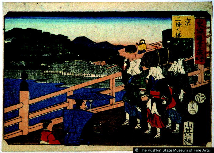 東海道五十三次 五十五 京三条大橋/ Tookaidoo gojuusan tsugi Fifty-five: Sanjoo Bridge, Kyoto |