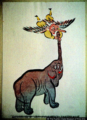 (天狗と象の鼻比べ)/ [Tengu and Elephant Comparing Noses] |