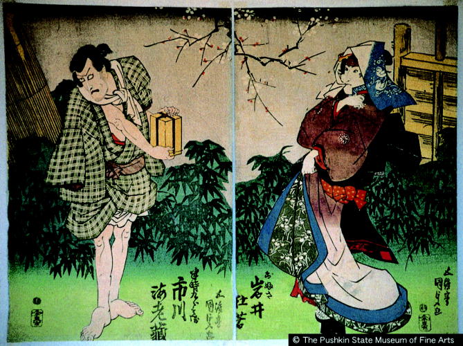おふさ 岩井杜若、半時九郎兵衛 市川海老蔵/ Iwai Tojaku in the Role of Ofusa/Ichikawa Ebizoo in the Role of Hantoki Kuroobei |