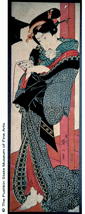 (釣燈篭で文を読む女)/ [Woman Reading a Letter by Lantern Light] |