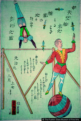 中天竺舶来之かるわざ/ Foreign Acrobats on the Horizontal Bar |