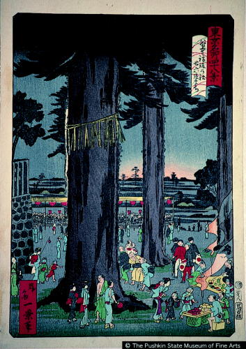 東京名所四十八景 (八)谷中諏訪乃社廿六夜まち/ Tokyo meisho shijuuhakkei Eight: Yanaka Suwa Shrine Festival |