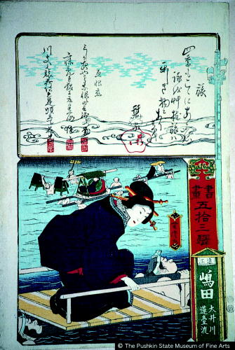 書画五十三駅 遠江嶋田/ Shoga gojuusan eki Shimada, Tootomi |
