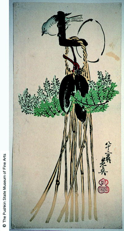 (正月飾に鴬)/ [Bush Warbler on New Year's Decoration] |