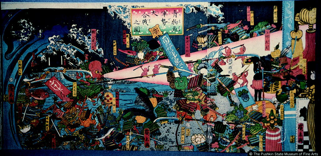 青物魚軍勢大合戦之図/ Battle Between Vegetables and Fish |