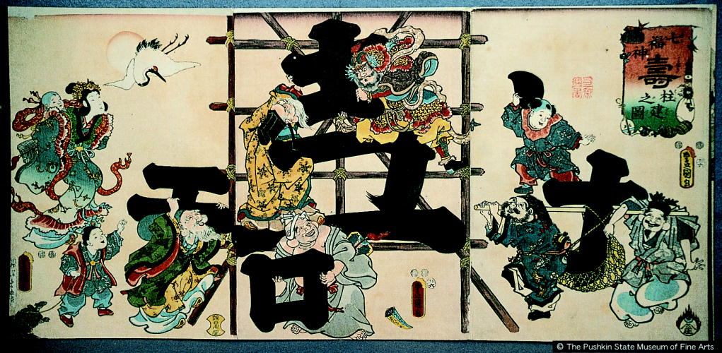 作品名 七福神寿柱建之図/ The Seven Gods of Good Fortune Creating a Pillar from the Character for Longevity