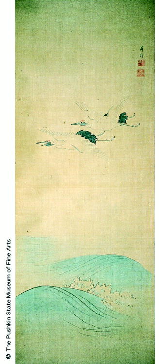 海上双鶴図/ Cranes Flying Over the Sea |