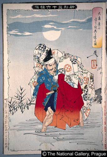 新形三十六怪撰 大森彦七道に怪異に逢ふ図/ Shingata sanjuurokkaisen Oomori Hikoshichi Encountering an Apparition on the Road |