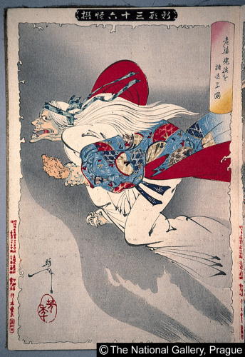 新形三十六怪撰 老婆鬼腕を持去る図/ Shingata sanjuurokkaisen The Old Demon Woman Retrieving Her Arm |