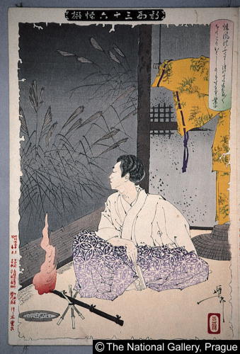 新形三十六怪撰 秋風のふくにつけてもあなめあなめをのこはいはじすすき生けり 業平/ Shingata sanjuurokkaisen Waka by Narihira |