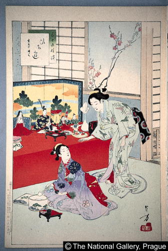 三十六佳撰 ひな遊 元文頃婦人/ Sanjuurokkasen Genbun Era Women Playing with Dolls |