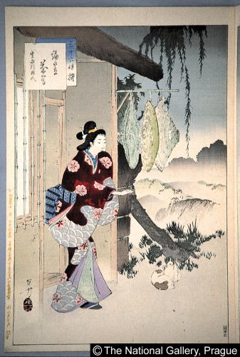 三十六佳撰 編笠茶屋 寛永頃婦人/ Sanjuurokkasen Kan'ei Era Woman by a Teahouse Selling Amigasa |