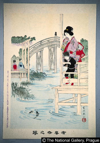有喜世之華 (鯉に餌をやる母子)/ Ukiyo no hana [Mother and Child Watching Carp] |