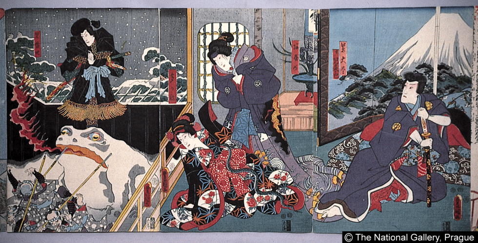 紫大尽実ハ児雷也・あやめ・たかね・児雷也/ Murasaki Daijin, but Actually Jiraiya/Ayame/Takane/Jiraiya |