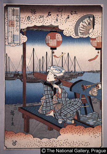 江戸むらさき名所源氏 見立あかし 高輪の夕月/ Edo murasaki meisho Genji Mitate of Akashi: Night Moon at Takanawa |