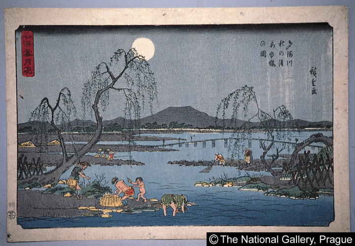名所雪月花 多満川秋の月あゆ猟の図/ Meisho setsugekka Autumn Moon at Tamagawa: Catching Ayu |