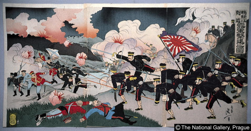 鴨緑江附近露軍撃退之図/ Attack on the Russian Army Near the Yalu River |