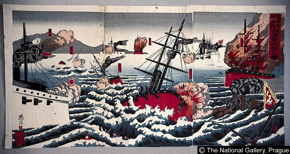 大孤山沖海戦我海軍大勝利之図/ Great Victory of Our Naval Forces at the Shore of Mt. Daku |