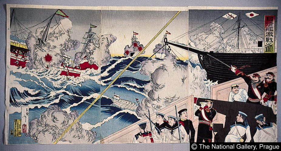 日清艦激戦之図/ Fierce Naval Battle Between Japan and China |