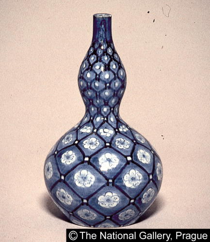 染付梅花網目文瓢形瓶/ Gourd-shaped bottle with design of plum blossoms and fishnet pattern |