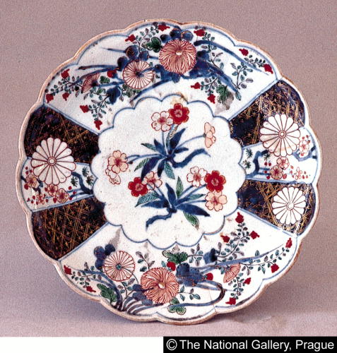 色絵菊桜文輪花皿/ Lobed plate with design of chrysanthemums and cherry blossoms |