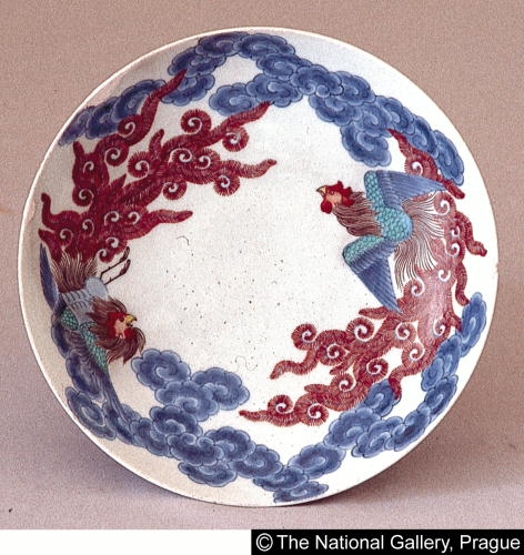 色絵鳳凰雲文皿/ Plate with design of phoenixes and clouds |