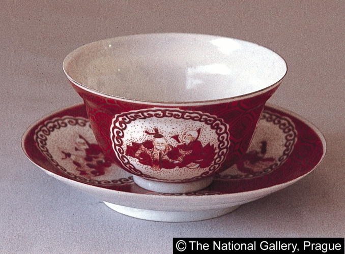 色絵風俗文紅茶碗皿/ Cup and saucer with genre scenes |