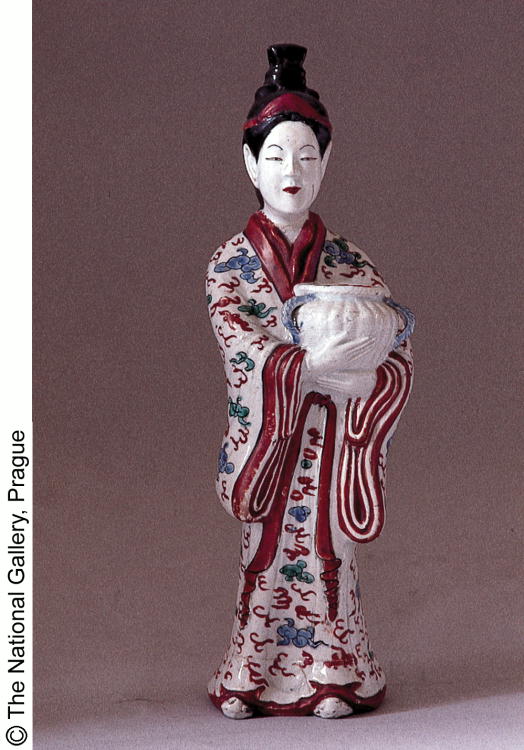 色絵雲文壷持婦人立像/ Standing female figurine holding a jar |