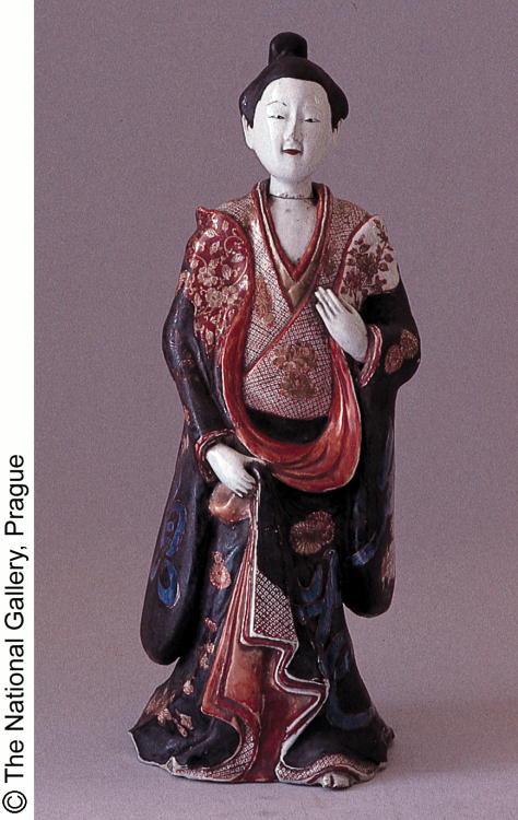 色絵文字入菊牡丹文婦人立像/ Standing female figurine |