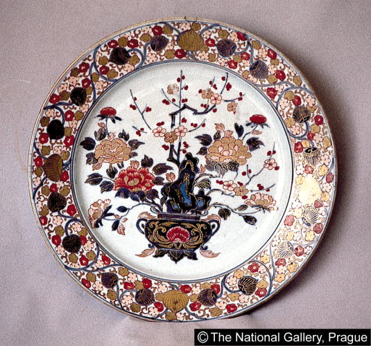 色絵花盆文皿/ Plate with design of floral arrangement |