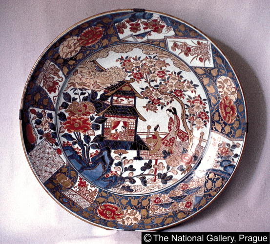 色絵楼閣婦人文大皿/ Large plate with scene of pavilion and women |