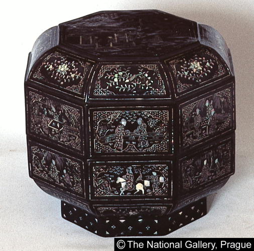 楼閣人物螺鈿八角食篭/ Octagonal food container |