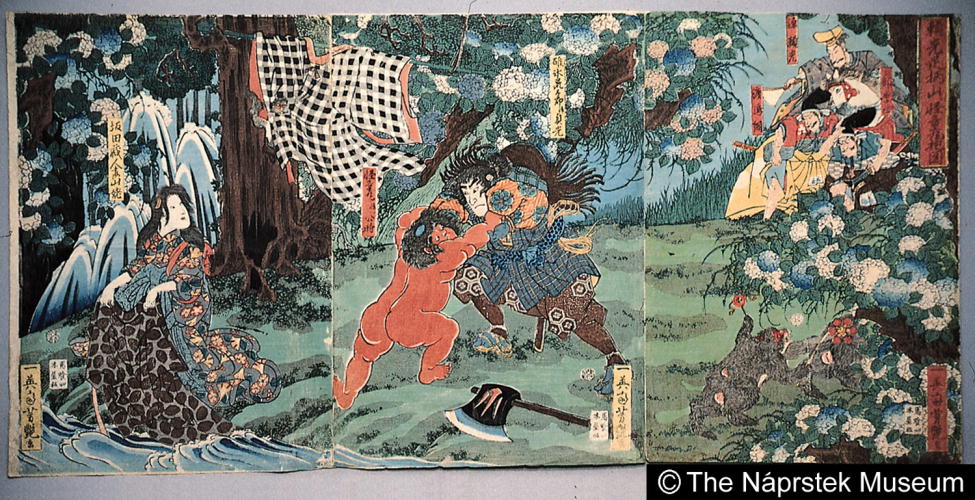 頼光足柄山怪童丸抱図/ Raikoo Wrestling with Kaidoomaru on Ashigarayama |