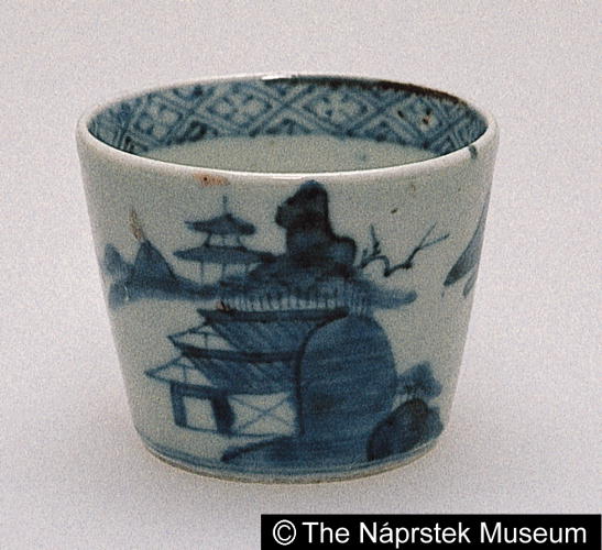 作品名 染付楼閣山水文猪口/ Cup with scene of pavilion in a landscape