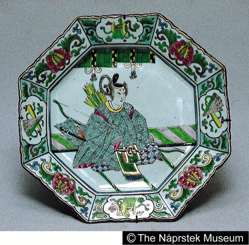 色絵武者絵文八角皿/ Octagonal plate with figure of samurai |