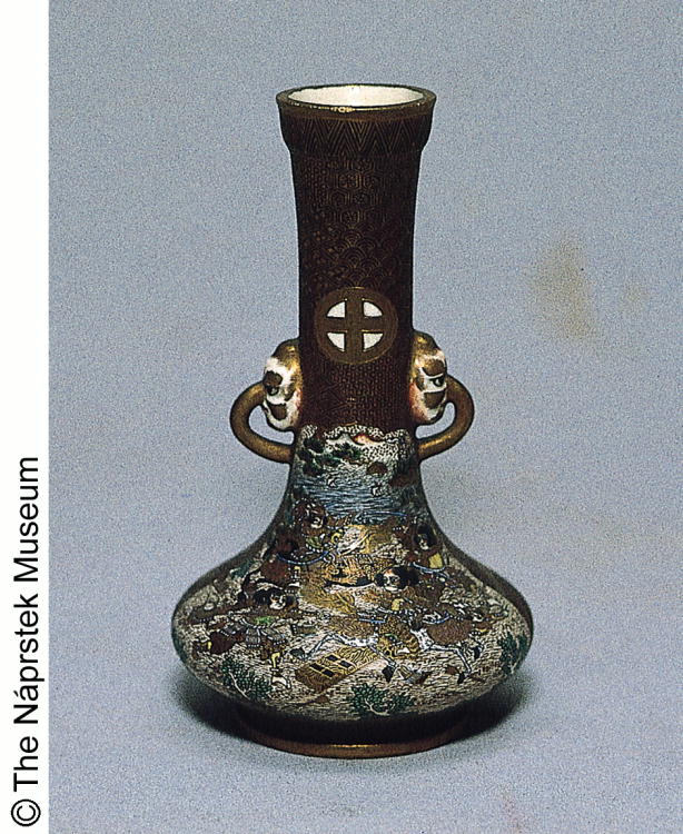 色絵陶器武者絵文双耳付瓶/ Two-handled bottle with design of samurai |