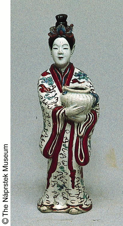 色絵飛雲文壷持婦人立像/ Standing woman holding a jar |