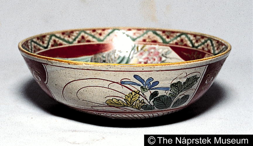 色絵陶器花鳥文鉢/ Bowl with design of flowers and birds |
