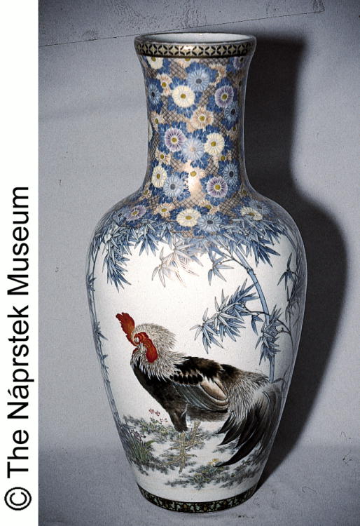 色絵家鷄文花瓶/ Flower vase with design of chickens |