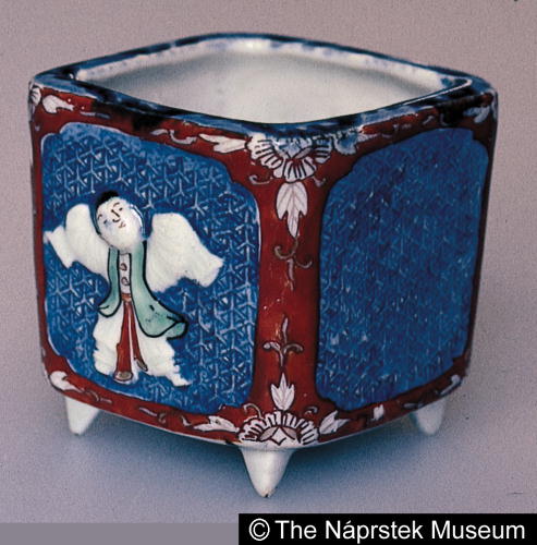 色絵唐子文四足付角形香炉/ Square incense burner with design of Chinese children |