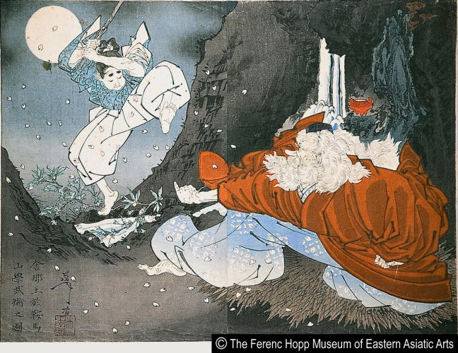 芳年漫画 舎那王於鞍馬山学武術之図/ Yoshitoshi manga Shanaoo Learning Martial Arts on Mt. Kurama |