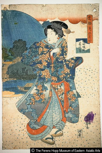 東都月の名所 墨田堤の春の月/ Tooto tsuki no meisho Spring Moon over the Sumida Riverbank |