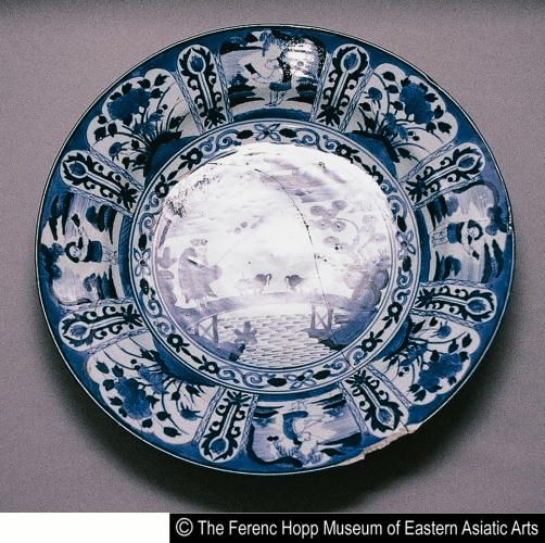 染付芙蓉手唐人文大皿/ Large plate with design of hibiscus flowers and Chinese figures |