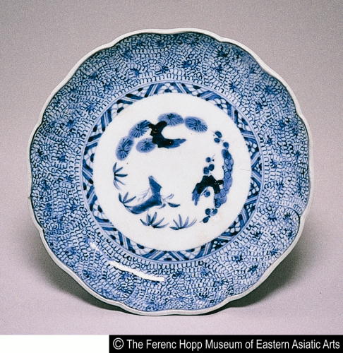 染付唐草文輪花皿(四枚の内)/ Lobed plate with karakusa design (one of four) |