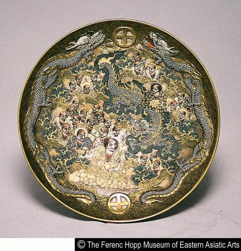 色絵羅漢龍文皿/ Plate with design of rakan and dragon |