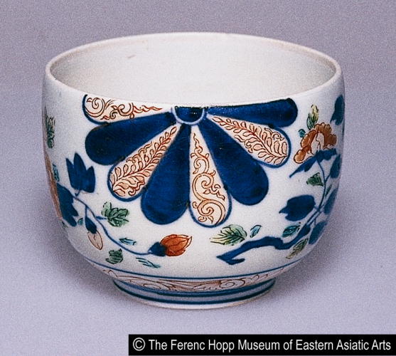 色絵牡丹菊花文蓋付鉢(蓋欠)/ Bowl with design of peonies and chrysanthemums (missing lid) |