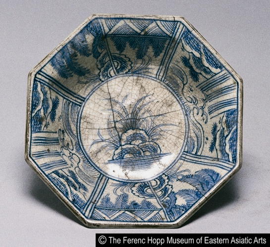 染付山水文八角鉢/ Octagonal bowl with landscape designs |