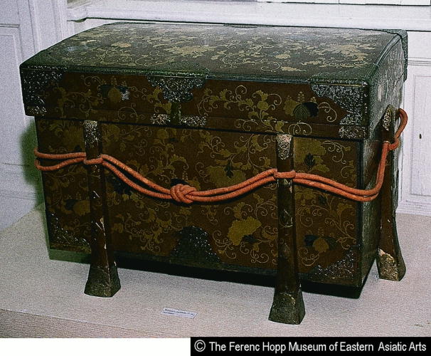 桐紋散牡丹唐草蒔絵唐櫃/ Rectangular chest with scattered paulownia crests, peonies, and karakusa |
