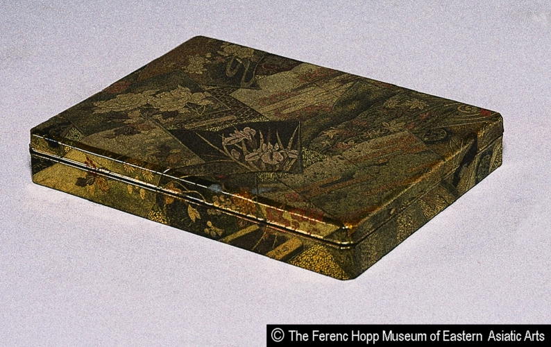 作品名 冊子散蒔絵小硯箱/ Small writing box with design of scattered book pages and autumn grasses